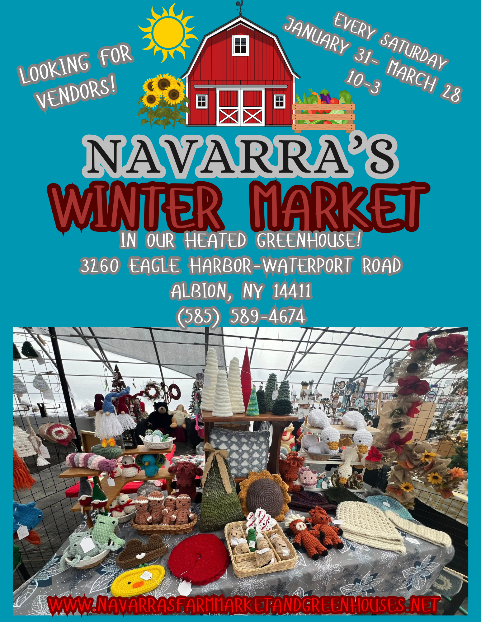 We have included several events that take place seasonally, produce boxes that are picked up weekly and educational/fun classes that are held here at nights and on weekends! We are also well known as a staple at the Rochester Public Market with our bedding plants in the spring and our homegrown produce in the summer, fall and winter! The last few years our handmade soaps have become a popular item so much that we have opened up a gift shop inside our Red Shed here at Navarra's that is open 7 days a week! The Red shed houses 25 local vendors! We are open year round but the hours will vary depending on the season!